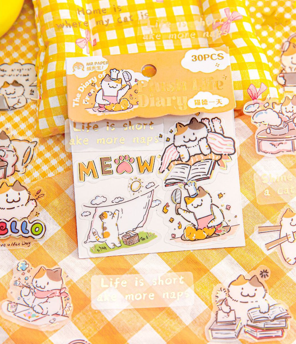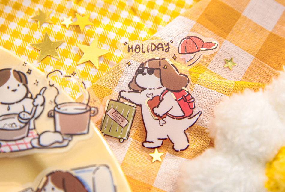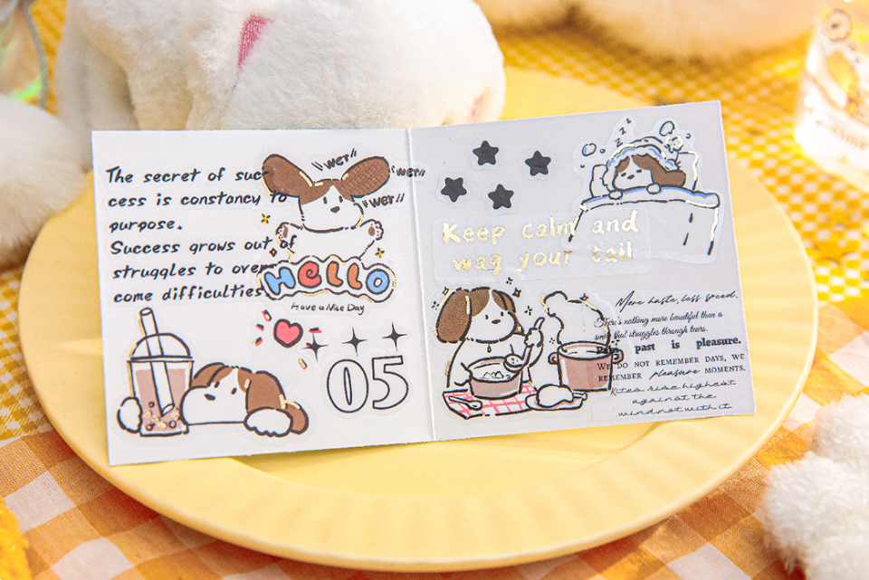 Plush Life Log Series Stickers - Chewing Cat and Dog Diary